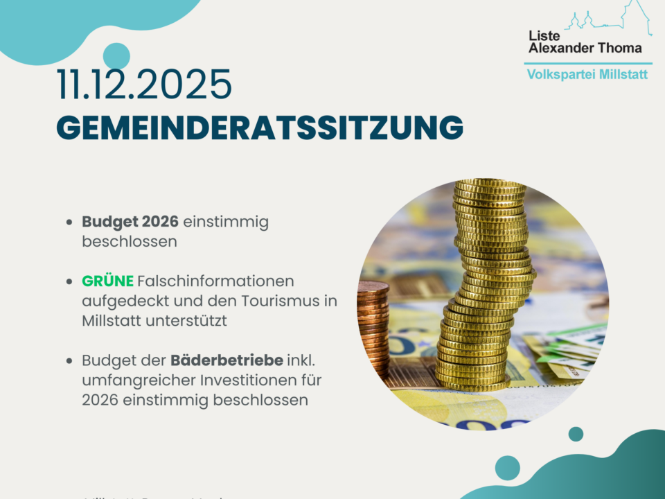 Budget 2026 einstimmig beschlossen GRÜNE Falschinformationen aufgedeckt und den Tourismus in Millstatt unterstützt Budget der Bäderbetriebe inkl. umfangreicher Investitionen für 2026 einstimmig beschlossen Millstatt. Besser. MachenBundeskanzler Christian Stocker zu Gast am Millstätter See